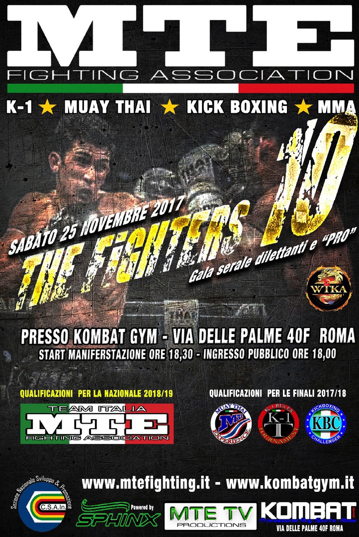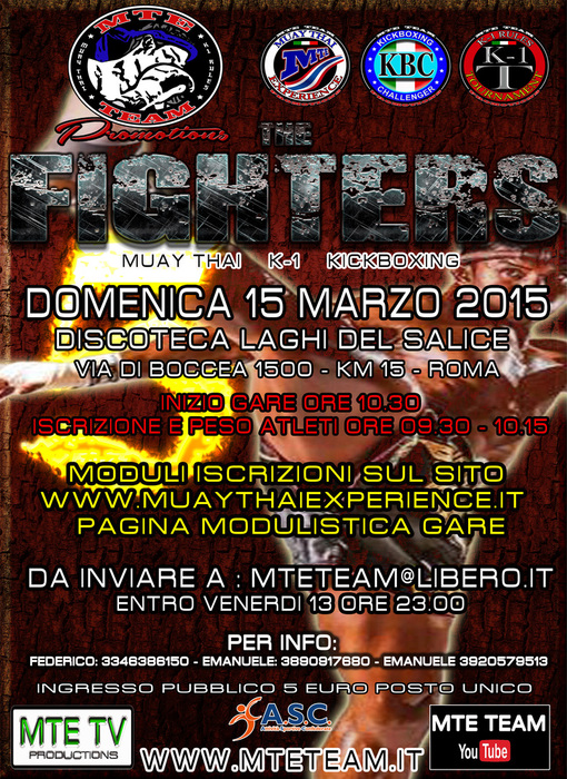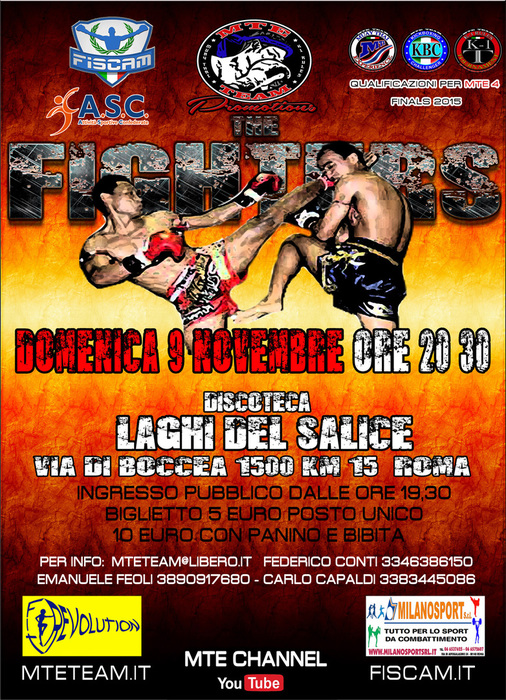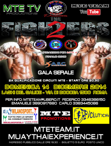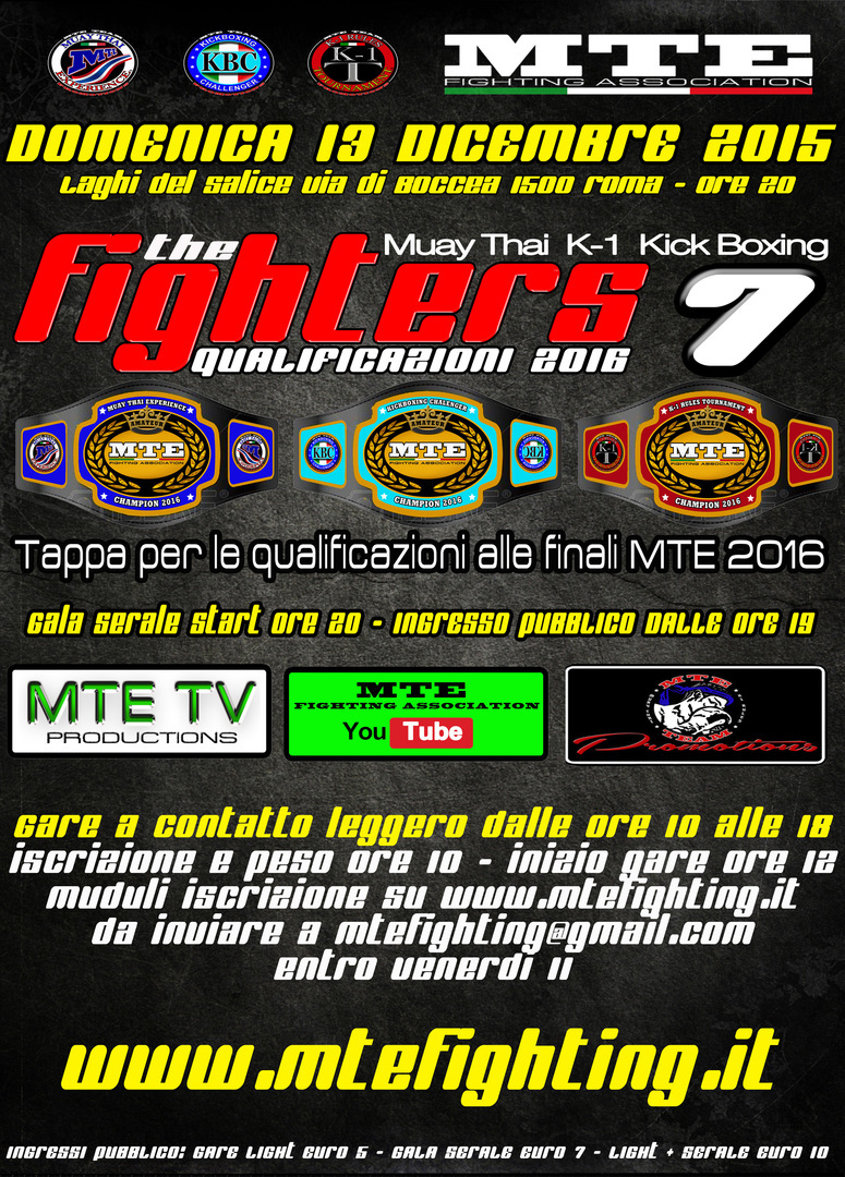 Domenica 13 Dicembre presso i Laghi del Salice (Roma Via di Boccea 1500) si svolgera il gala serale THE FIGHTERS 7 valido come prima tappa di qualificazione alle finali dei circuiti MTE per la stagione 2015/16.