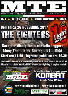 Per le iscrizioni degli atleti inviare mail a mtefighting@gmail.com